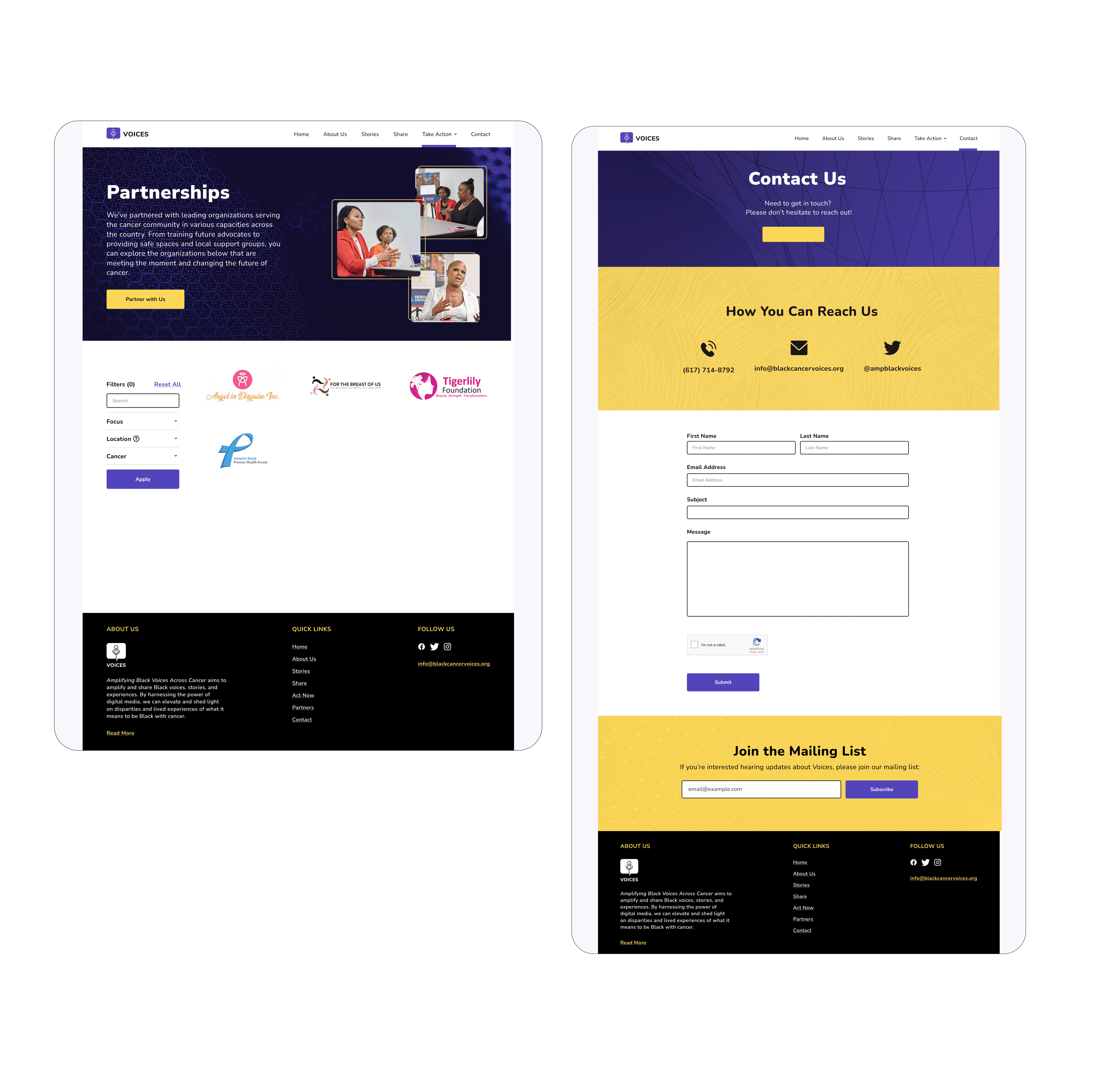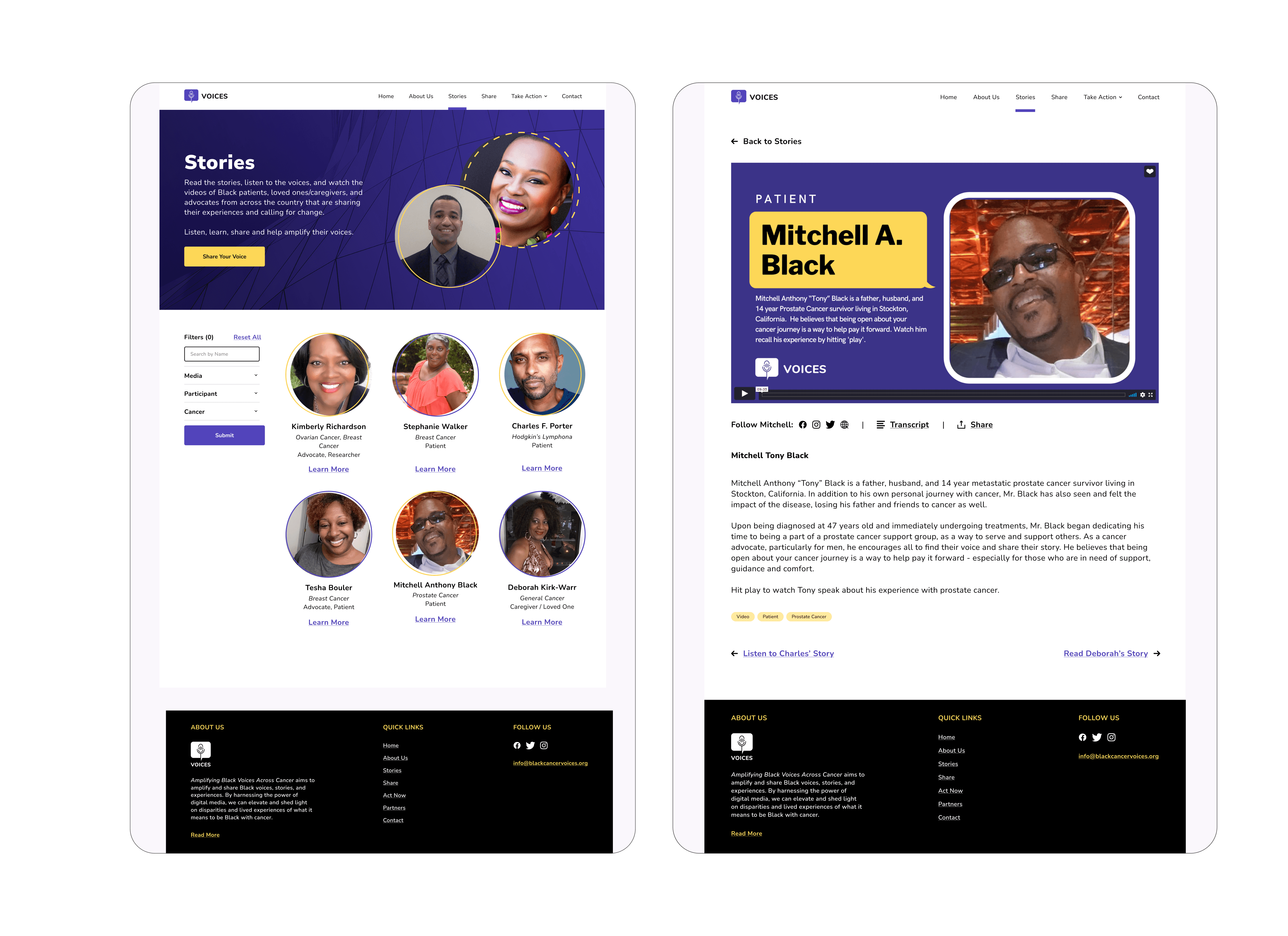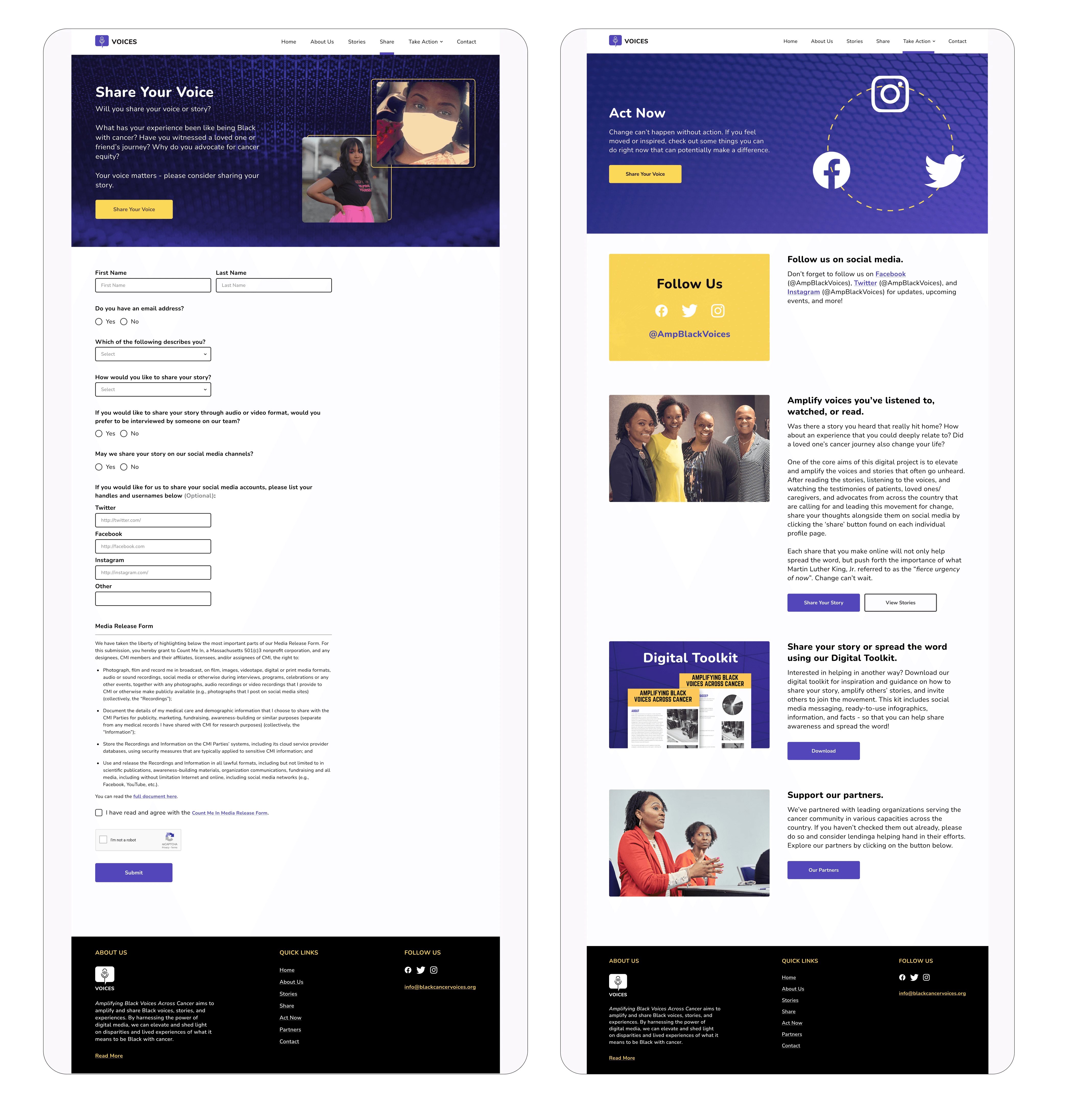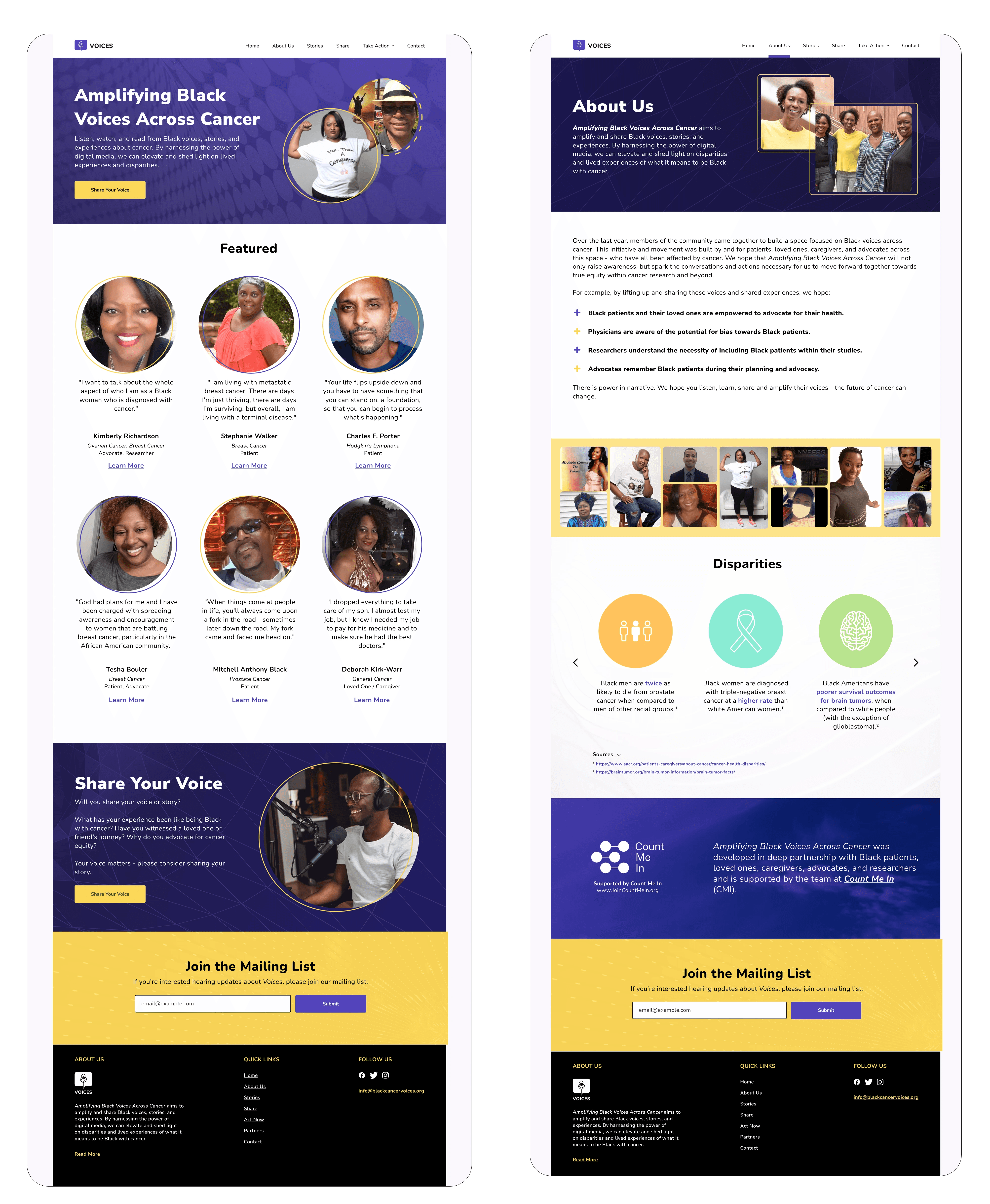 A digital website project called Voices was put into motion to create a safe space in which the voices and stories of communities across all cancers are compiled, amplified, and represented.