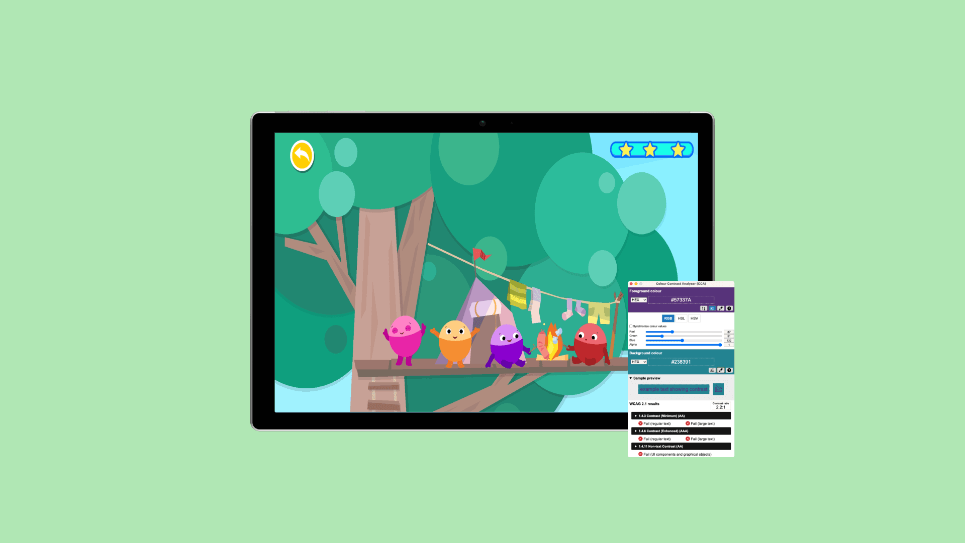 An initial accessibility audit was conducted by a third-party vendor and the results showed that 23 out of 50 requirements were not supported in our game activities.